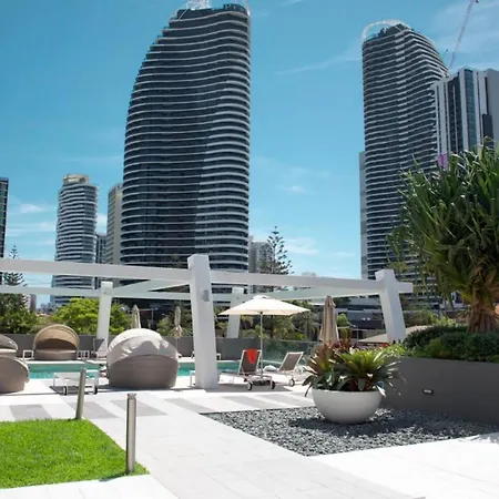 これはインフィニティ ゴールドコーストから運転すれば10分になります。 バーのHideaway Kitchen and Barは歩いて約5分です。 アパートはパシフィックフェアショッピングセンターの近くです。